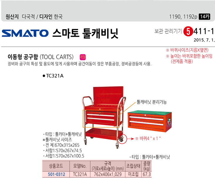 [½º¸¶ÅäÅøÄɺñ³Ý] À̵¿Çü °ø±¸ÇÔ(TC321A, 762x406x1029mm, ¹ÌÁ¶¸³¹ß¼Ûǰ)(Tool Carts)=>Á¦Ç°´ÜÁ¾!