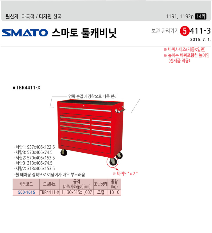 [½º¸¶ÅäÅøÄɺñ³Ý] ·Ñ·¯ À̵¿Çü ¼­¶øÇü°ø±¸ÇÔ(TBR4411-X, 1130x515x1007mm)(Roller Total Tool Cabinet)=>Á¦Ç°´ÜÁ¾!