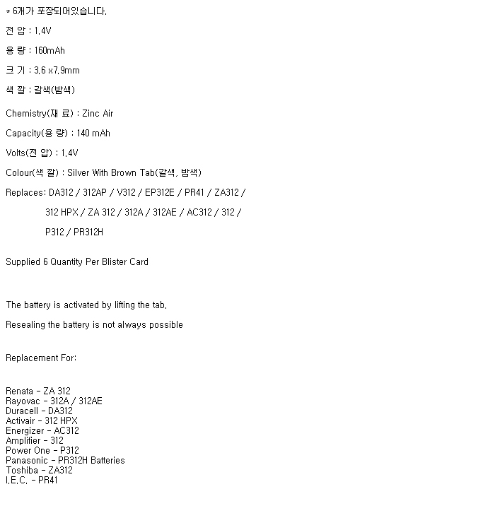 PR312H-6C(1.4V 160mAh)