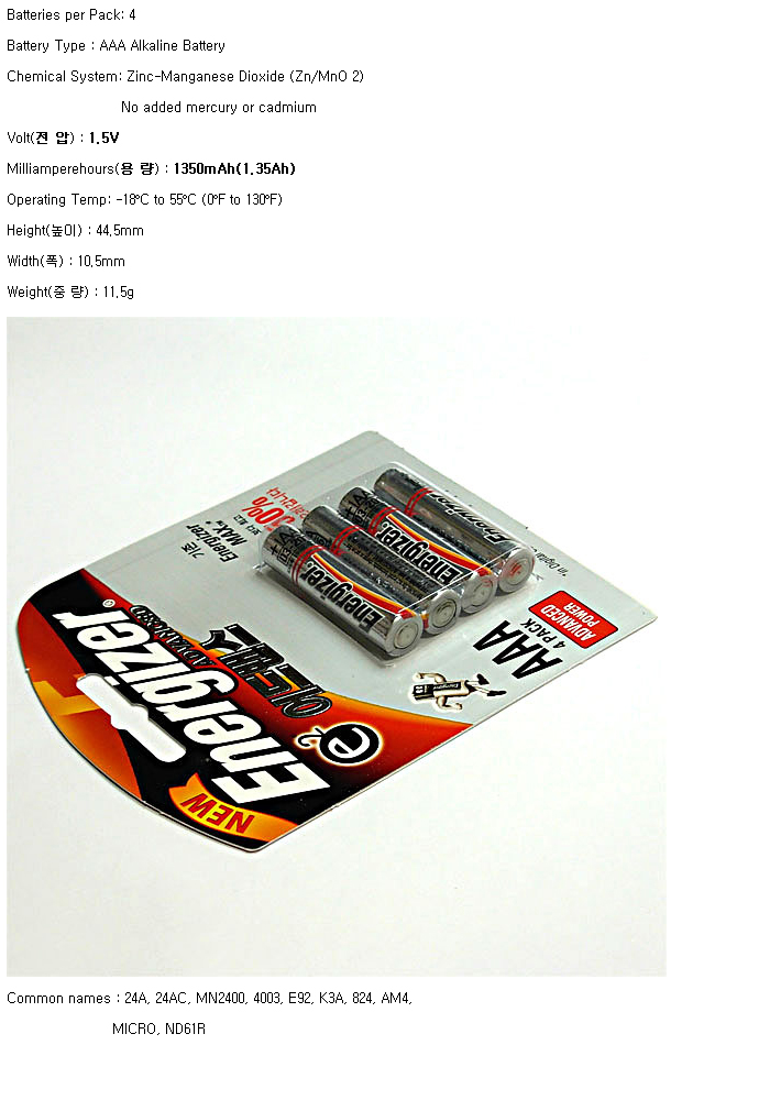 LR03-4BP(X92 AAA 1.5V 1350mAh)¾îµå¹ê½º
