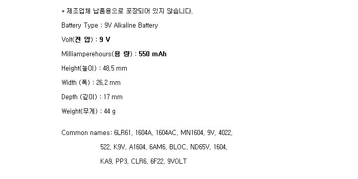 MN1604-BULK(9V 550mAh)