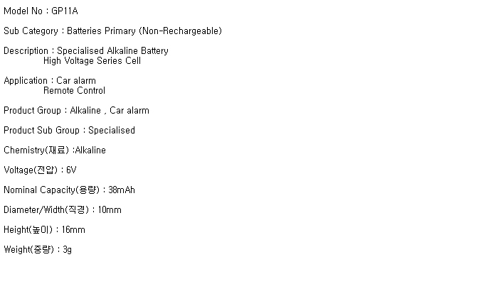 GP11A-BULK(6V 38mAh):¼öÀÔÁß´Ü,ǰÀý!!