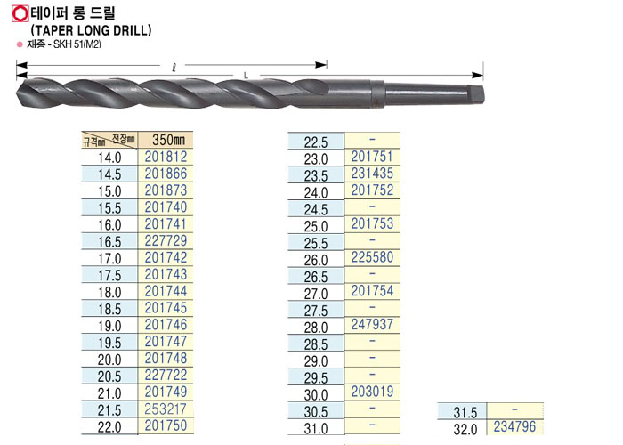 [YG]Å×ÀÌÆÛ ·Õ µå¸±(TAPER LONG DRILL)350mm 14.0mm~18.5mm