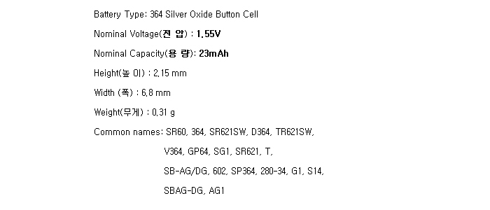 SR621SW(364/1.55V 23mAh)So