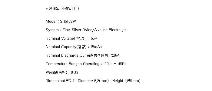 SR616SW(321/1.55V 15mAh)Ma