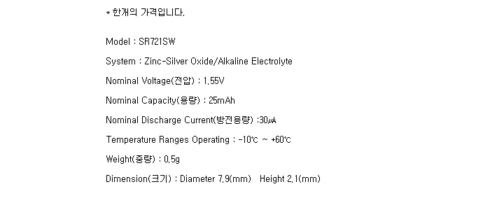 SR721SW(362/1.55V 25mAh)Ma