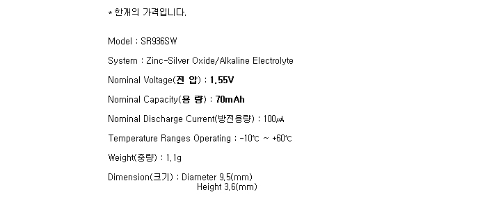 SR936SW(394/1.55V 70mAh)Ma