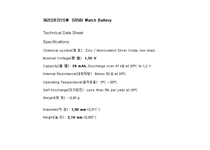 362(SR721SW 1.55V 24mAh)Re