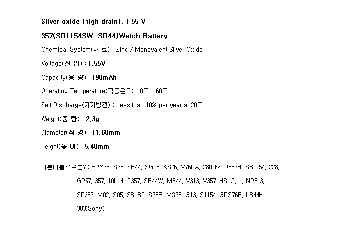 357(SR44W 1.55V 190mAh)Re