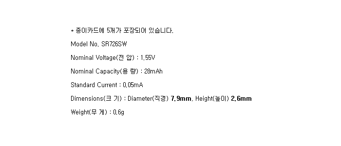 SR726SW-5BP(1.55V 28mAh)To