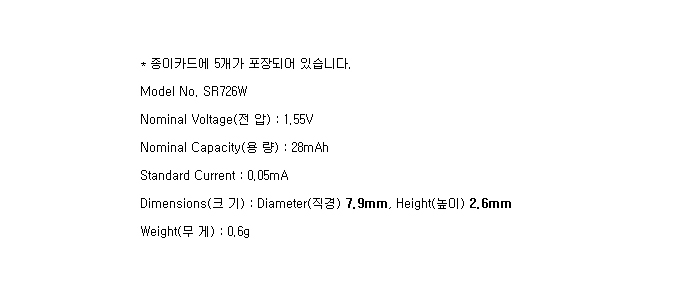 SR726W-5BP(1.55V 28mAh)To