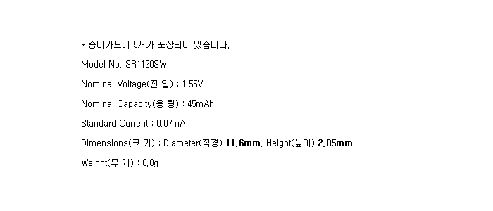 SR1120SW-5BP(1.55V 45mAh)To