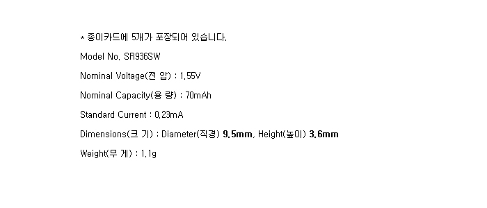 SR936SW-5BP(1.55V 70mAh)To