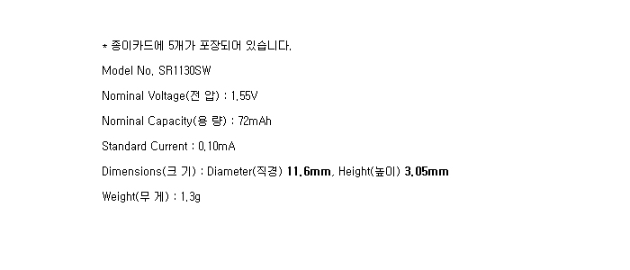 SR1130SW-5BP(1.55V 72mAh)To