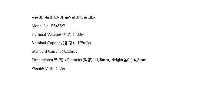 SR43SW-5BP(1.55V 125mAh)To
