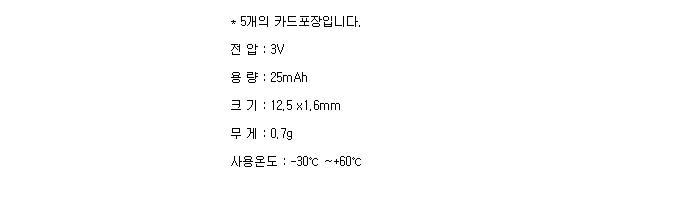 CR1216-5BP(3V 25mAh)Pa