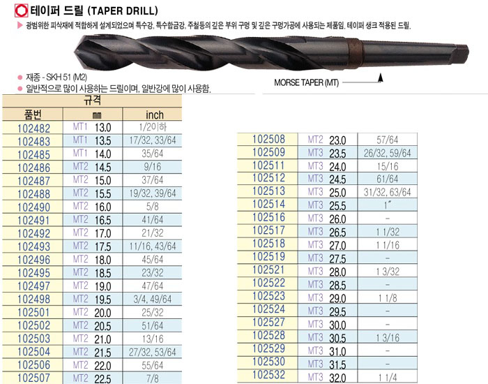 [ORES]Å×ÀÌÆÛ µå¸±(TAPER DRILL)18.0mm~22.5mm