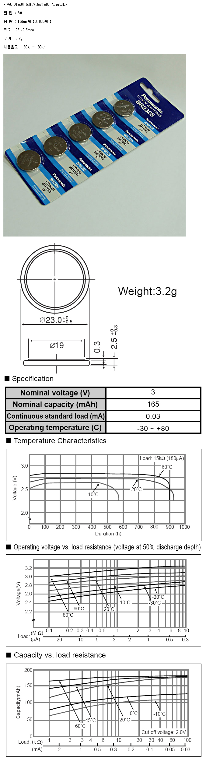 ÆÄ³ª¼Ò´Ð BR2325-5BP(3V 165mAh)