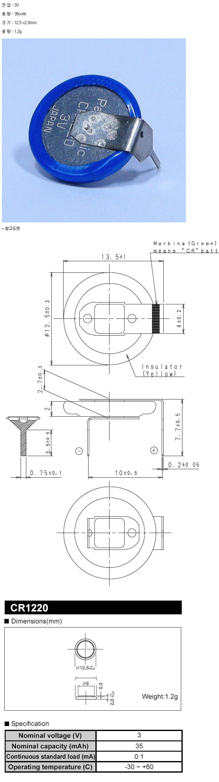 Panasonic CR1220-H2P-G10(3V 35mAh)