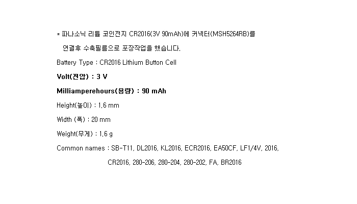 CR2016(3V 90mAh)C5264RR=>Á¦Ç°´ÜÁ¾!