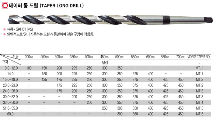 [ORES]Å×ÀÌÆÛ ·Õ µå¸±(TAPER LONG DRILL)450mm 28.0mm~32.0mm