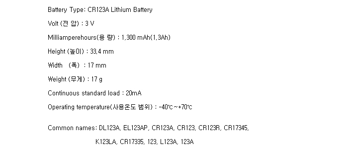 Panasonic CR123A(2/3A 3V 1550mAh)C145227RR