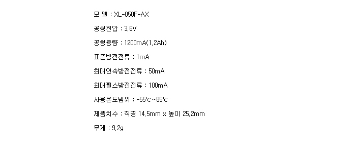 XL-050F-AX(1/2AA 3.6V 1200mAh)