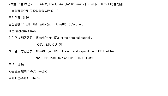 Tekcell SB-AA02(1/2AA 3.6V 1200mAh)C805550RB