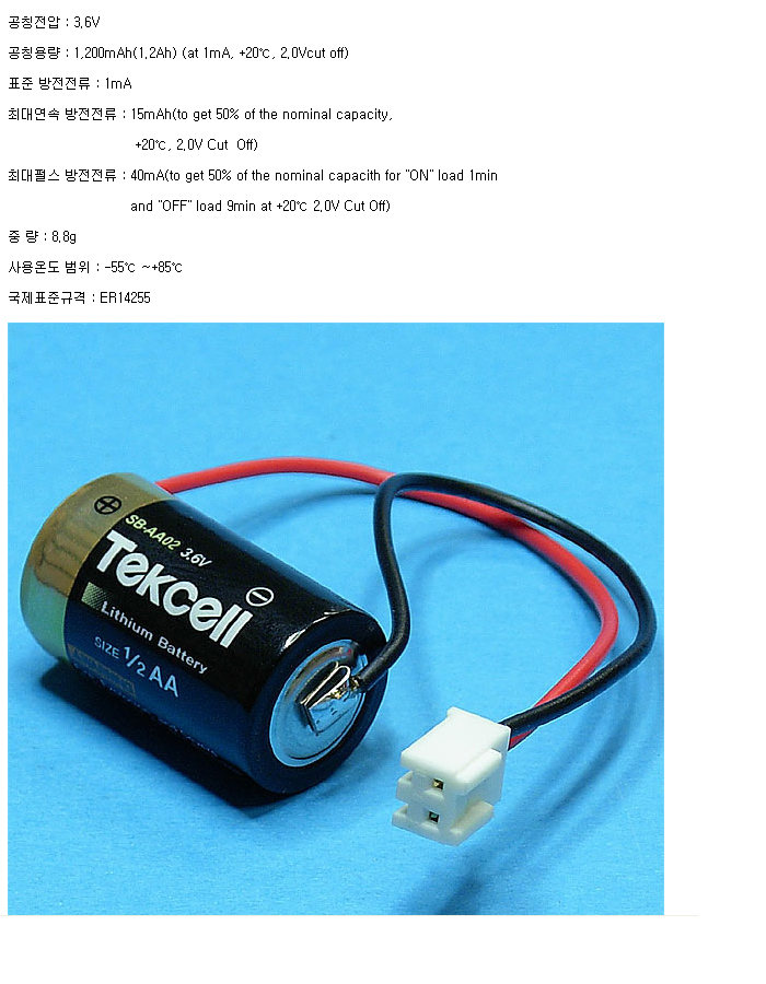 Tekcell SB-AA02(1/2AA 3.6V 1200mAh)C805550RB