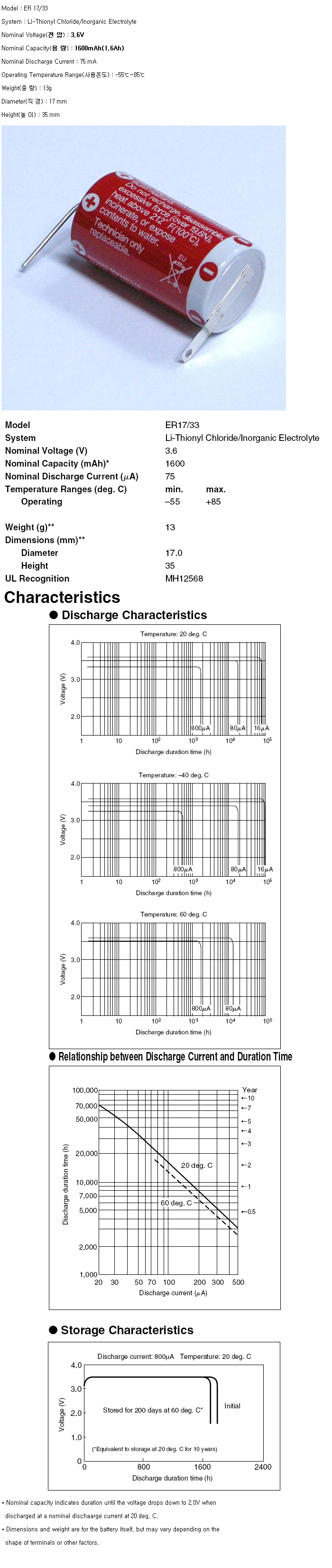 ER17/33-V2PNH(2/3A 3.6V 1600mAh)