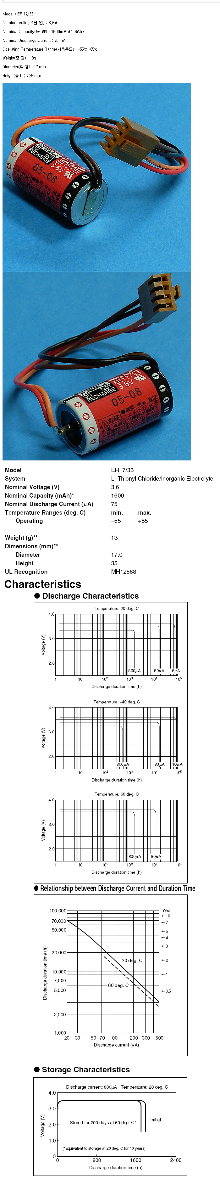 ER17/33(2/3A 3.6V 1600mAh)C141105-4P4L