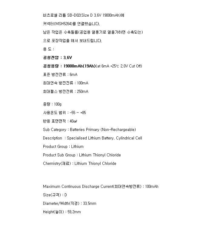 Tekcell SB-D02(D 3.6V 19000mAh)C5264RB