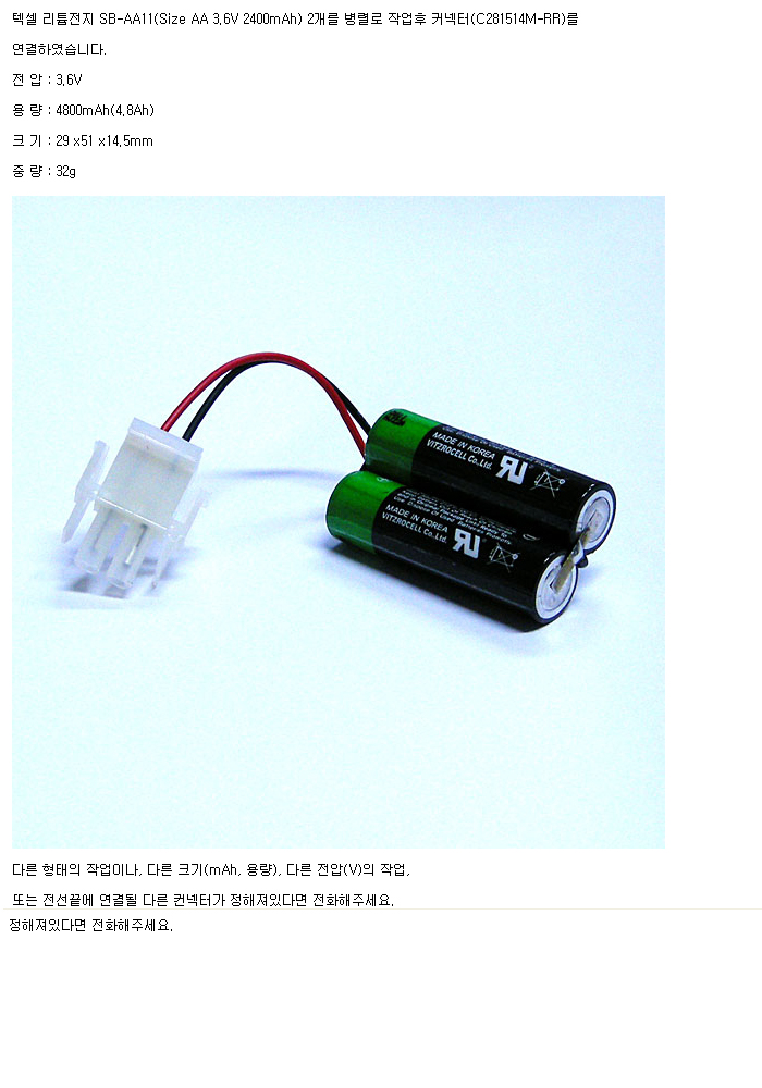 2SBAA11-R-1S2P(3.6V 4800mAh)C281514M-RR