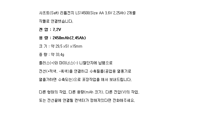 2LS14500AA-R(7.2V 2450mAh)