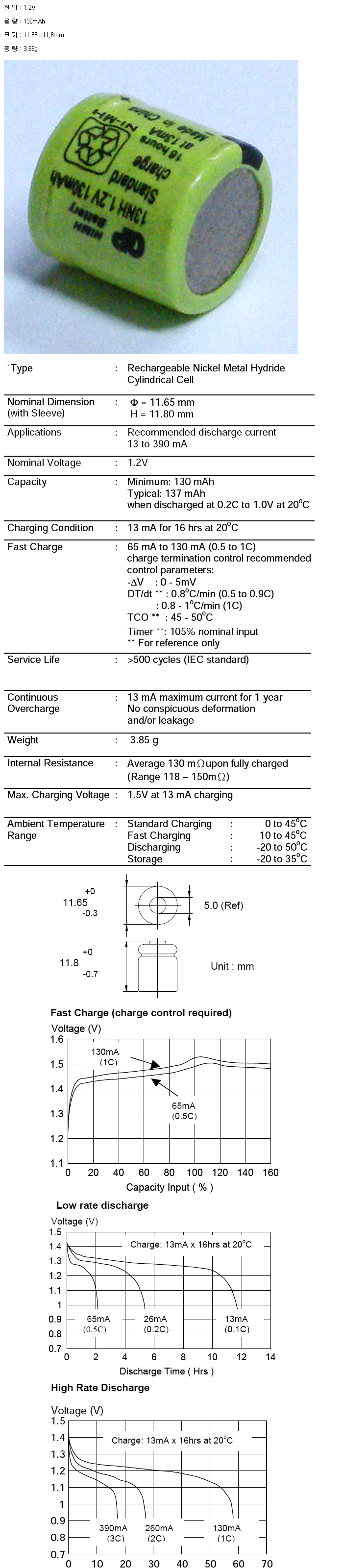 GP13NH(1/3N 1.2V 130mAh):¼öÀÔÁß´Ü,ǰÀý!!