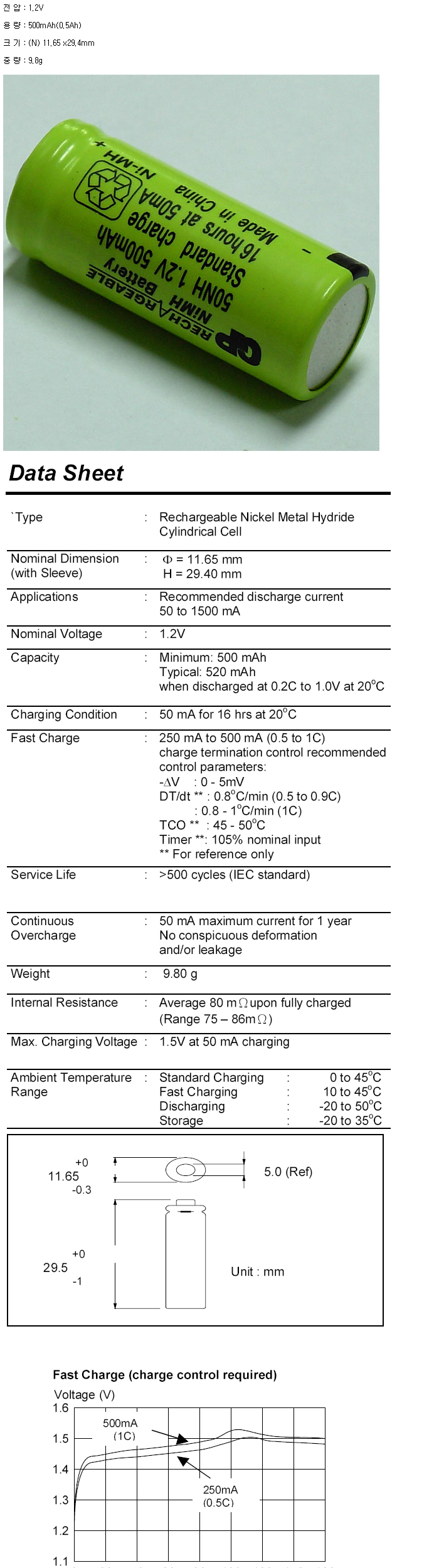 GP50NH(N 1.2V 500mAh):¼öÀÔÁß´Ü,ǰÀý!!