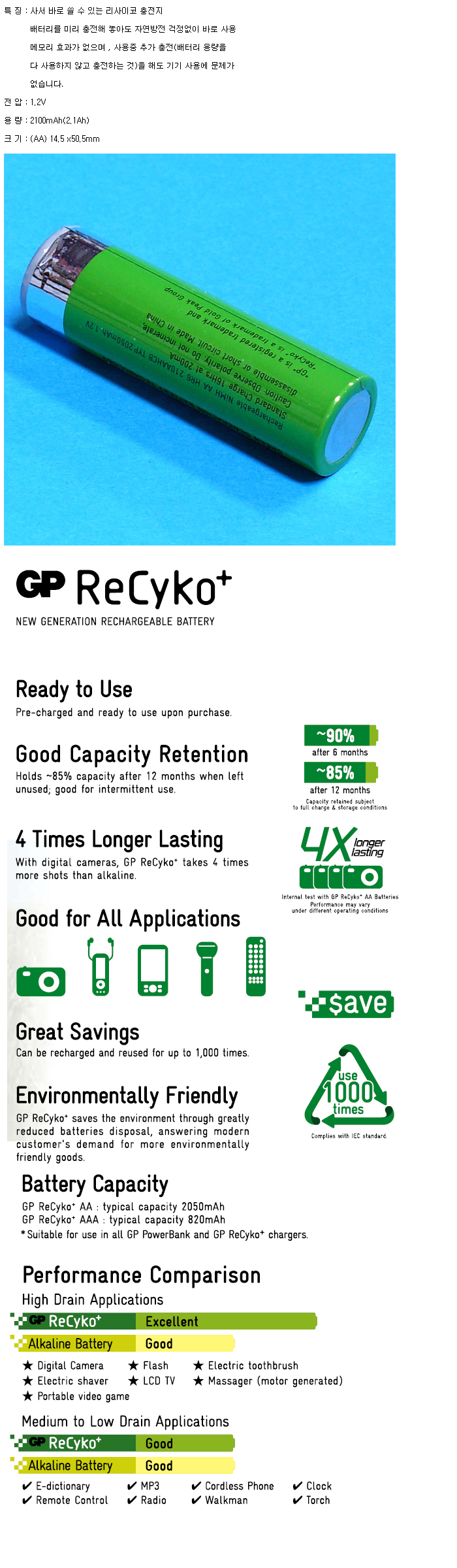 Recyko GP210AAHCB-2BP(AA 1.2V 2100mAh):¼öÀÔÁß´Ü,ǰÀý!!