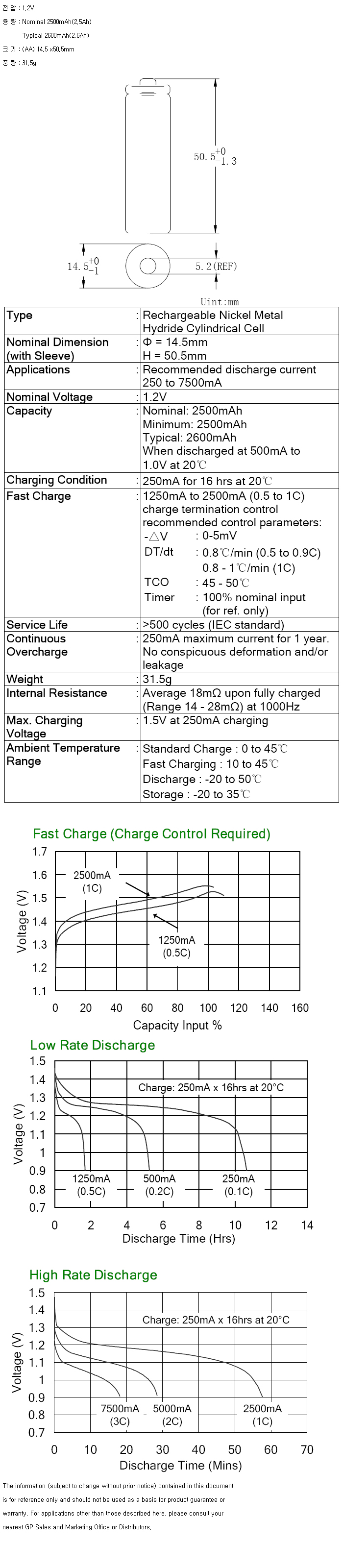 GP270AAHC-2PCS(AA 1.2V 2600mAh):¼öÀÔÁß´Ü,ǰÀý!!