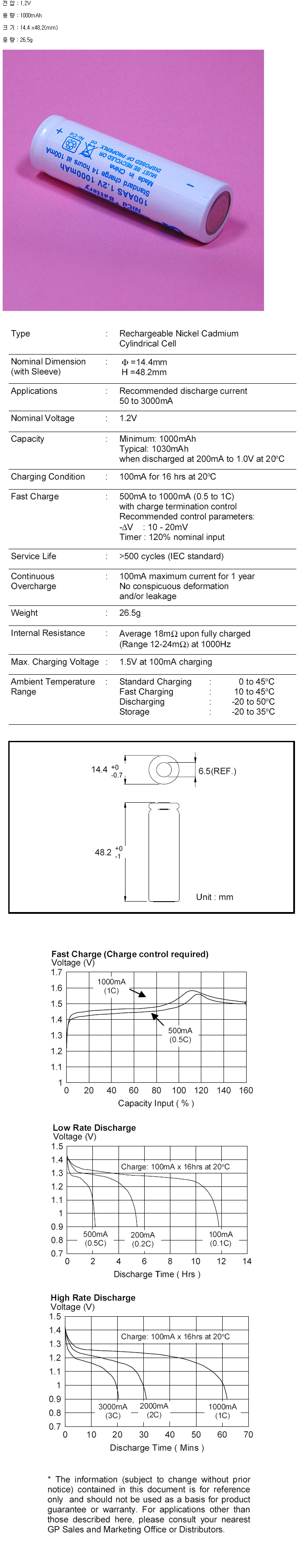 GP100AAS(AA 1.2V 1000mAh):¼öÀÔÁß´Ü,ǰÀý!!