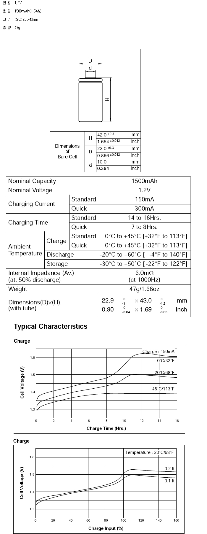 KR-1500SC-NM(SC 1.2V 1500mAh)