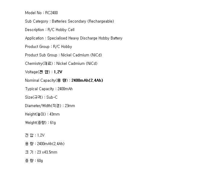 »ê¿ä RC-2400SC(SC 1.2V 2400mAh)