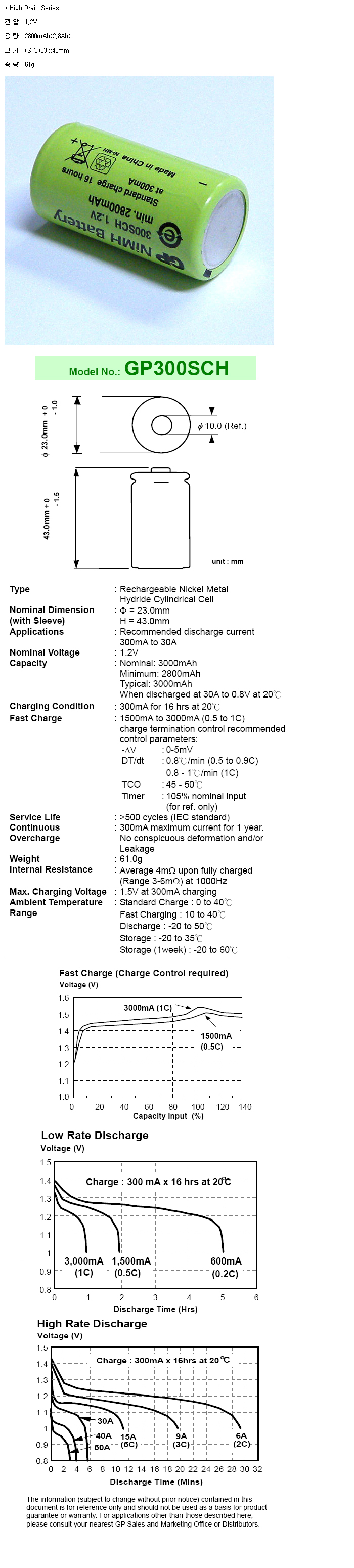 GP300SCH(SC 1.2V 2800mAh):¼öÀÔÁß´Ü,ǰÀý!!