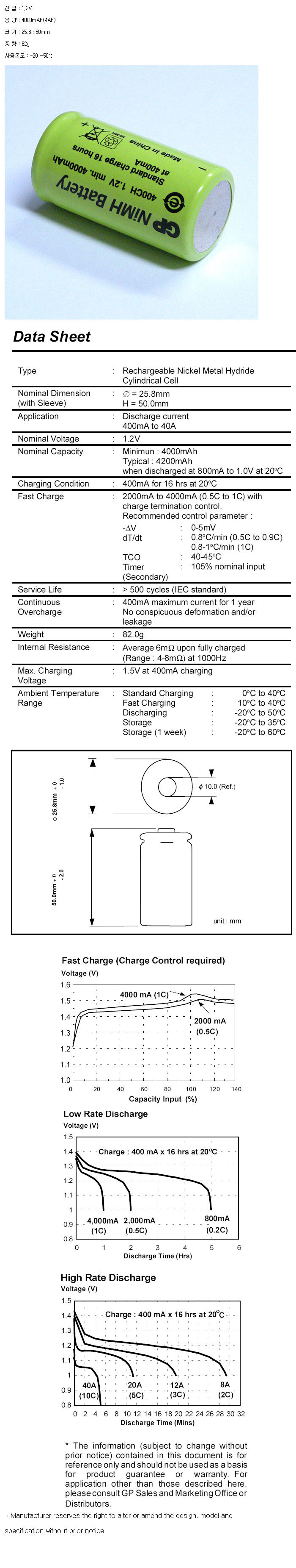 GP400CH(C 1.2V 4000mAh):¼öÀÔÁß´Ü,ǰÀý!!