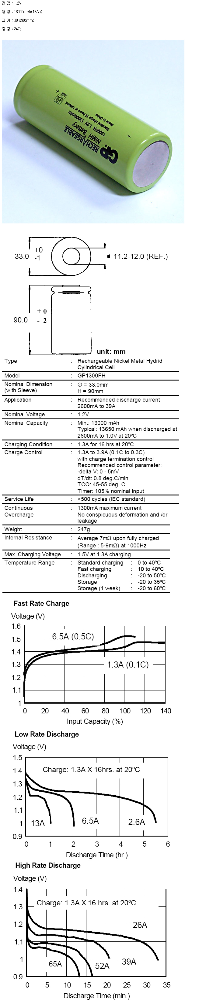 GP1300FH(F 1.2V 13000mAh):¼öÀÔÁß´Ü,ǰÀý!!