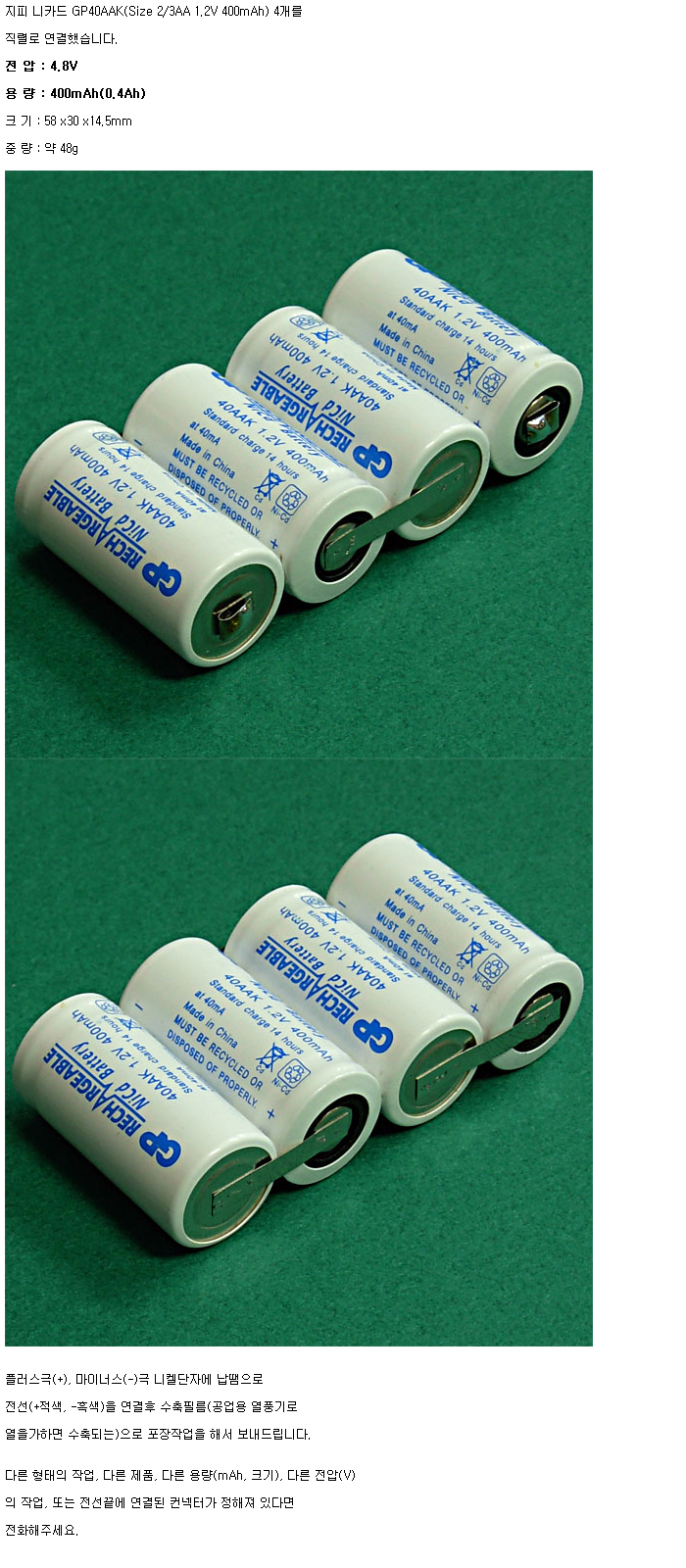 GP4N40AAK-R(4.8V 400mAh):¼öÀÔÁß´Ü,ǰÀý!!