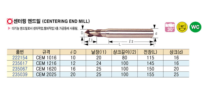 [ÇϳªÅø½º] ¼¾Å͸µ ¿£µå¹Ð (CENTERING END MILL) CEM1016 ~ 2025