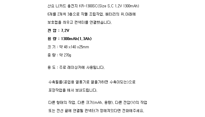 6KR1300SC-3F-Cap(7.2V 1300mAh)C271407M-SRCB