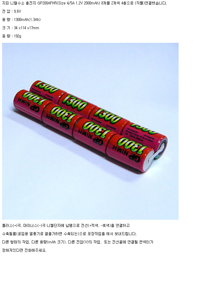 GP8N130AFHR-4F(9.6V 1300mAh):¼öÀÔÁß´Ü,ǰÀý!!