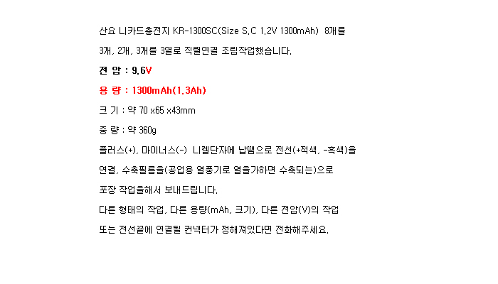 SA8KR1300SC-3RB(9.6V 1300mAh)