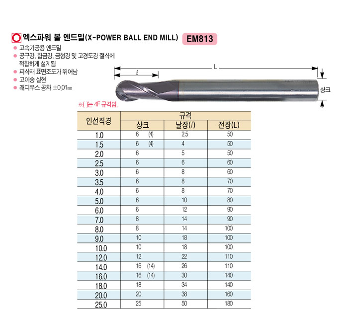 [¿ÍÀÌÁö¿ø] ¿¢½ºÆÄ¿ö º¼ ¿£µå¹Ð (X-POWER BALL END MILL) 16.0 2F ~ 25.0 4F